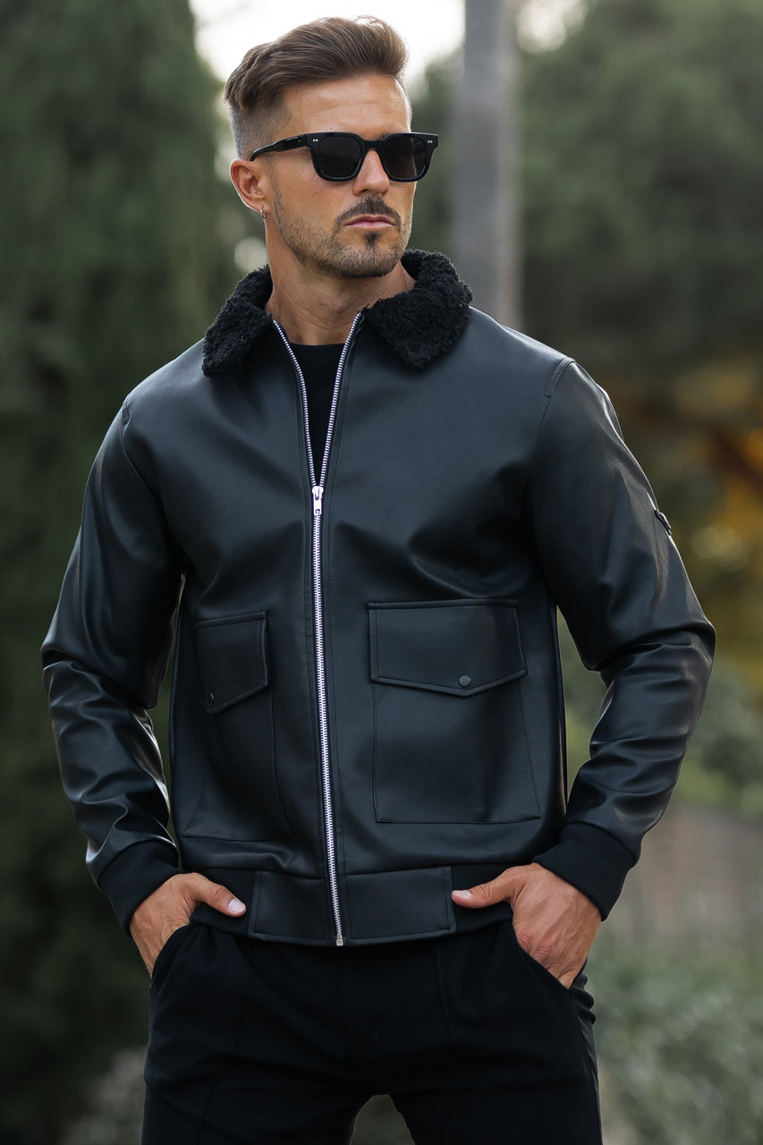Biker Faux Leather Jacket - Black